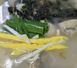 일단 사골 육수가 진짜 진해요. 첫 한 숟가락 떠먹는 순간 "아, 이거 제대로 우린 국물이구나" 싶었어요. 뽀얗고 고소한 국물이 입안 가득 퍼지는데, 인스턴트 맛이 전혀 안 나요. 오랜 시간 정성껏 끓인 육수의 깊은 맛이 느껴져요.