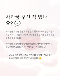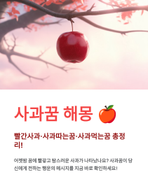 댓글로 여러분의 사과꿈 이야기를 공유해주세요! 실제로 좋은 일이 생긴 경험도 들려주세요 😊 공감 버튼도 꾹 눌러주시면 감사하겠습니다!
